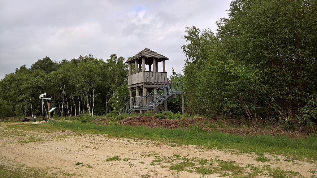 Nach der Durchquerung es Moores geht es entlang der Siedlerstraße Richtung Westen. Kurz vor Füchtenfeld geht es rechts ab und eine geschotterter Radweg führt uns am südlichen Rand des Moores entlang. Am Ende des Radweges rechts abbiegen und dann erreicht man nach einigen hundert Metern ein Aussichtsturm.